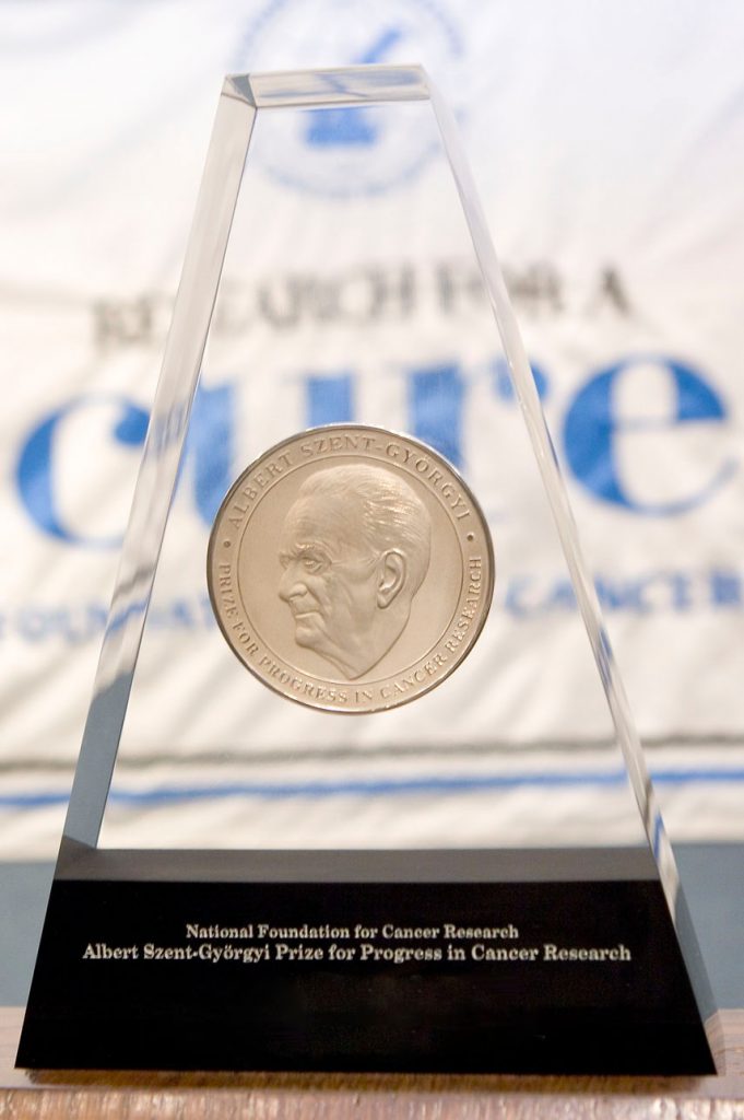 The Szent-Györgyi Prize serves to stimulate the quest for continued investment in the pioneering research that will produce scientific breakthroughs and lead to a deeper understanding of the scientific concepts behind the genetics and molecular makeup of cancer. By calling attention annually to achievements in this area, it is our desire to heighten awareness of the kind of research and discovery that must be accomplished