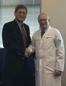 On behalf of NFCR, Chief Science Officer Michael Wang congratulates Dr. Daniel Von Hoff in person on November 11, 2016