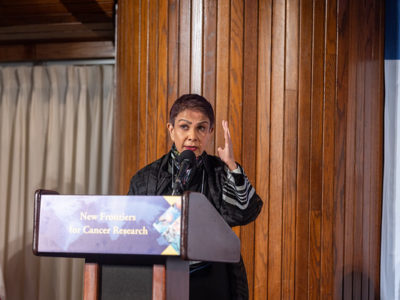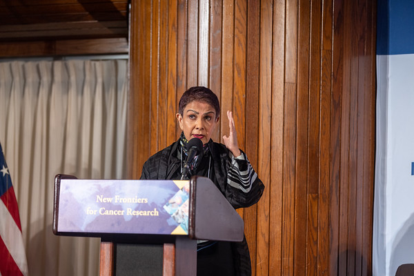The panel on new approaches to cancer prevention and treatments covered research supported by NFCR and invited researchers in the field. This panel was moderated by Suzanne Topalian, M.D. and included esteemed scientists Kornelia Polyak, M.D., Ph.D., Avery D. Posey, Ph.D., Azra Raza, M.D., and Thea D. Tlsty, Ph.D. The panel shared their work from immunotherapy to tumor microenvironment. They discussed the advancements in single-cell profiling, proteomics, transcriptomics, and metabolomics in a spatial manner, which has enabled a much better understanding of why and how tumors progress. Finally, they advocated the need to run trials that establish treatments in earlier stages, such as those drugs that would be more effective as neoadjuvant drugs and administered between the diagnosis and surgery stages. They also called for more paradigm-shifting research for cancer prevention, trying to stop the first cell’s formation and cancer spreading which energized vivid discussions with the audience.