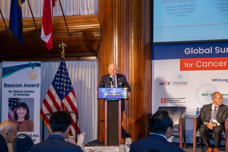 The 2023 NFCR Global Summit was honored to have Dr. James P. Allison, 2014 Albert Szent-Györgyi Prize winner and 2018 Nobel Prize winner in Physiology or Medicine, deliver his keynote remarks. His innovative research has led to life-saving treatments for those with limited options. His talk highlighted the breakthroughs of checkpoint inhibitors in CTLA4 and PD-1 immunotherapies, which took more than 30 years to be recognized by the mainstream scientific world. He emphasized the progress made through combination therapies, which have significantly improved patient outcomes in some advanced-stage cancers. Many targets are still being explored that could overcome immune exhaustion and leverage the body’s immune system to combat cancer cells, further instilling hope for more effective cancer therapeutics for patients. He highlighted the importance of understanding the intricacies of the immune system and the long and challenging path of scientific discovery. He calls for more science to be conducted to understand patient data in order to design better combination trials, saving patients’ resources and time.