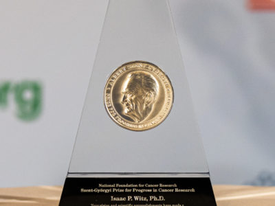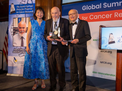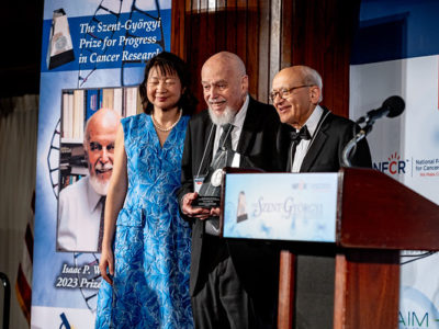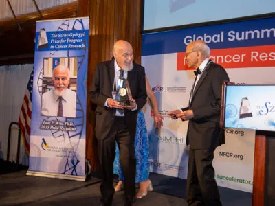 The Albert Szent-Györgyi Prize, a hallmark of NFCR, is awarded to individuals whose seminal discovery or pioneering body of work has contributed to cancer prevention, diagnosis, or treatment and has had a lasting impact on understanding cancer, holding the promise of improving or saving lives of cancer patients.