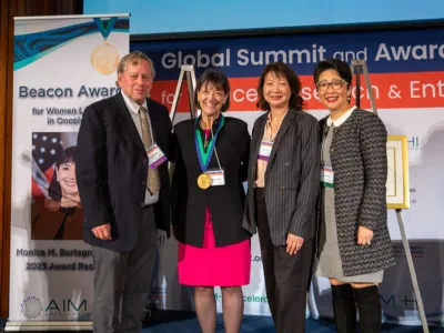 The Beacon Award for Women Leaders in Oncology, established in 2022 by the AIM-HI Accelerator Fund, a translational research and impact-impact investment affiliate of the National Foundation for Cancer Research (NFCR), recognizes trailblazing women leaders in the health and life sciences industry who have made a significant impact on advancing and advocating for cancer treatments, detection, diagnosis and public policy changes for patients around the world.