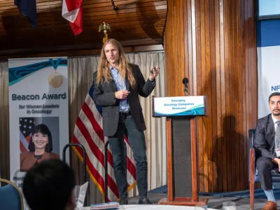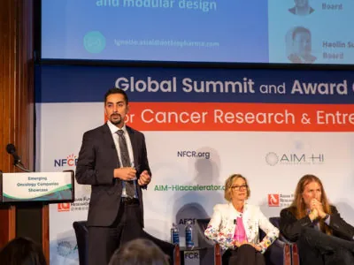 The 2023 Global Summit for Cancer Research and Entrepreneurship brought together leaders in the oncology ecosystem—from academia, clinical care, industry, finance, science, and public policy—to share valuable insights and innovations in the fight against cancer. These summaries of the talks offer a glimpse into the depth and diversity of discussions at the summit, showcasing the collective determination to advance cancer research and improve patient outcomes. Many collaborative discussions emerged immediately following the conference, and we look forward to the outcome of these exciting discussions.