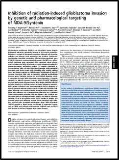 Dr. Web Cavenee and Dr. Paul Fisher Publish Report Titled “Inhibition of radiation-induced glioblastoma invasion by genetic and pharmacological targeting of MDA-9/Syntenin”