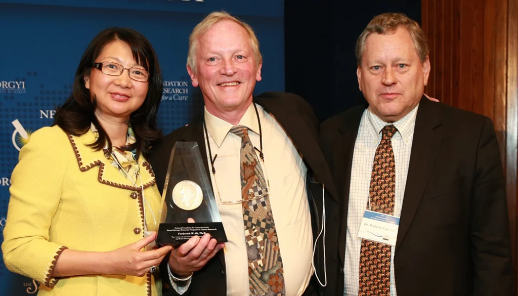 “For me, it’s totally humbling,” said Alt in an interview with NFCR at the time. “To get something like the Szent-Györgyi, which specifically recognizes contributions in cancer research, and research that has made a difference — it’s hard to describe how satisfying that is.”