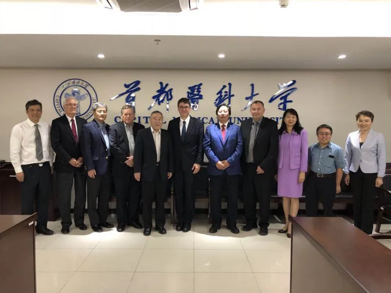 The delegation too visited Capital Medical University (CMU), a top academic institution. There they met with CMU President Dr. Yongfeng Shang, President Dr. Yongjun Wang of CMU’s affiliated Beijing Tiantan Hospital (BTH), BTH Neurosurgery Chairman Dr. Jizong Zhao and Dr. Wenbin Li, Director of the China National Clinical Research Center for Neurological Diseases (NCRC-ND), whose facility they too toured. The parties expressed interest in building up long-term cooperation in the field of brain tumor research and treatment, and to gradually expand to all cancer types. Exchange programs could allow CMU graduate students and young scientists to study at DKFZ and participate in collaborative research projects.