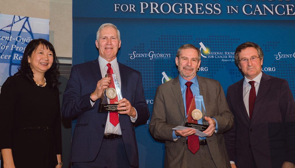 In 2014, NFCR awarded Dr. Allison the Szent-Györgyi Prize for Progress in Cancer Research, before his ground-breaking research was widely recognized. His discoveries in immunotherapy led to the development of immune checkpoint therapy and the first FDA-approved drug for metastatic melanoma. Dr. Allison received the 2018 Nobel Prize in Physiology or Medicine for the same game-changing discoveries.