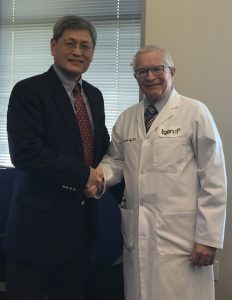 On behalf of NFCR, Chief Science Officer Michael Wang congratulates Dr. Daniel Von Hoff in person on November 11, 2016