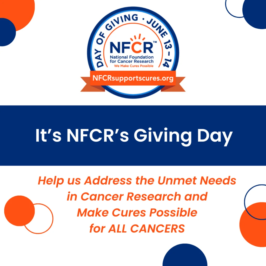 Starting June 13th at noon and running until noon on June 14th, the National Foundation for Cancer Research will host our annual Giving Day!