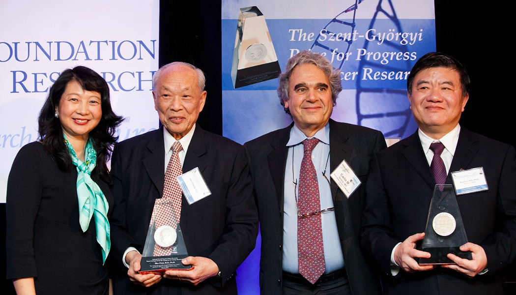 2012 Szent-Györgyi Prize Selection Committee Co-Chair Sujuan Ba, Ph.D., Winner Zhen-Yi Wang, M.D., Selection Committee Member Carlo Croce, M.D., and Winner Zhu Chen, M.D., Ph.D.,
