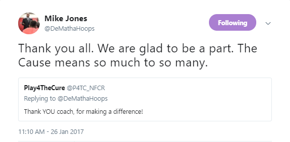 In year three the goal remains the same, to encourage the Mid-Atlantic Basketball area teams to “Play4” something bigger than the game and support cancer researchers across all different focus areas. To see more updates on teams getting involved with Play4TheCure and Cancer Research Week be sure to follow us on Twitter, @P4TC_NFCR.