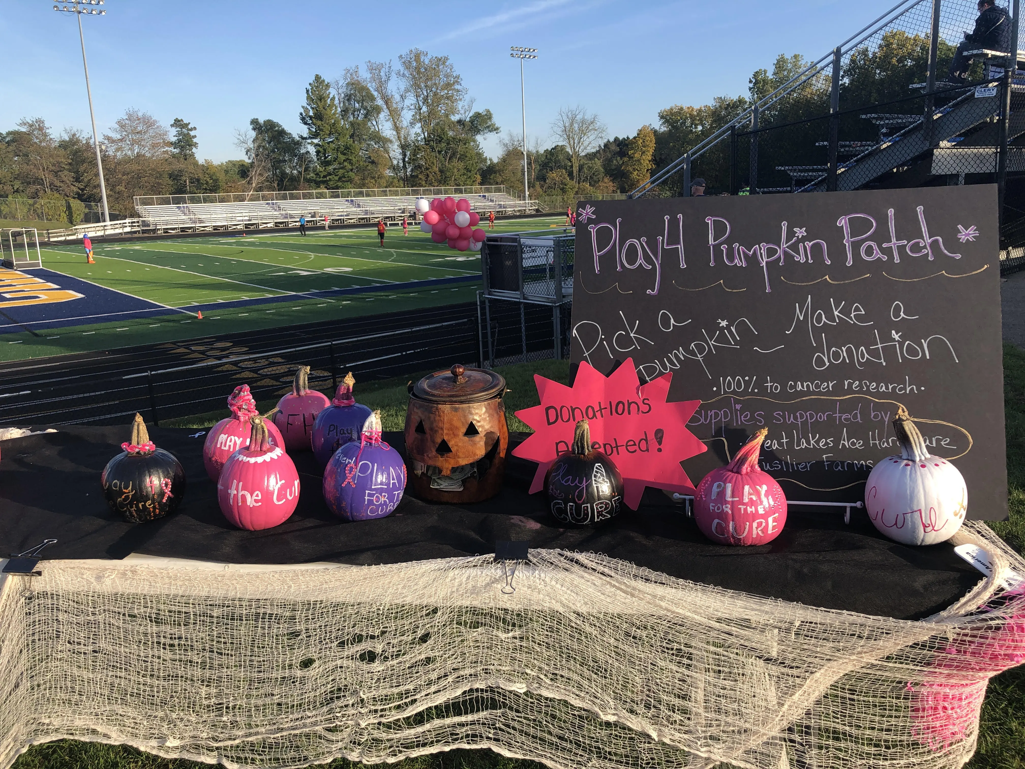 And, new this year was the Play 4 Pumpkin Patch! Players decorated individual pumpkins and displayed them at the game. Spectators could donate and take a pumpkin home. This fun and festive activity raised over $200 for breast cancer research!